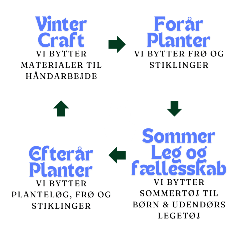 Trappereolen danner ramme for et byttemarked, hvor du kan give hvad du har i overskud og tage hvad du har brug for. Temaet for byttemarkedet følger årstidernes skiften og giver mulighed for at vi kan genanvende og udveksle med hinanden.